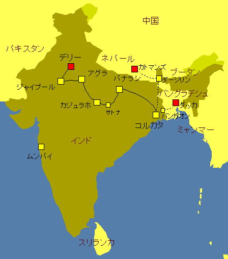 ■ルート1:デリー→ジャイプール→アグラ→カジュラホ→バナラシ→コルカタ(カルカッタ)