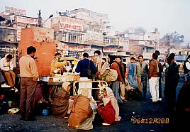 アグラ・カント駅前の風景。元日の朝、今年はじめての朝食の準備。