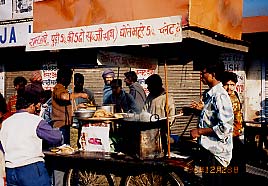 カレー屋。 一杯5円ほどだが、香りと味はよい。でも、砂っぽい。