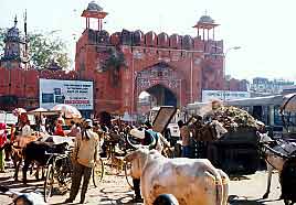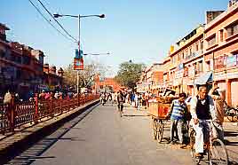 デリーから南西へおよそ300km、 列車で5時間ほどで、ラジャスターン州の州都ジャイプルへ到着。ジャイプール駅を出た瞬間、リクシャー(インド版タクシー)やら宿の客引きの嵐である。特に当てもなかったため、リクシャー運転手に半日市内観光をお願いした。ガイドブックには載っていない寺院やらいろいろと案内してもらえた。ただし、ドライバーに行き先を任せる場合注意しなくてはならないのが、必ず「友人の店」に連れて行かれることである。