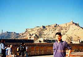 アンベール城 。ジャイプルから北へ11km、市内からバスで所要30分。城の麓の停留場で降りる。