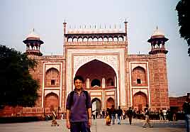 タージマハル入り口。立派な建物である。タージマハル(が建っているの敷地)に入場するためには、荷物チェックをさせられる。空港にあるような金属探知器をくぐった上、鞄の中を調べられる。
