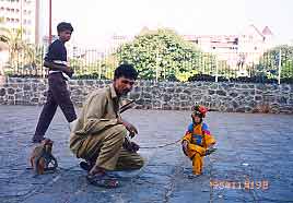 猿回し。写真を撮るとお金を要求されることは容易に想像がつくであろう。 |