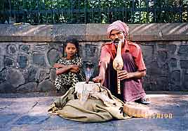 ヘビ使い。写真を撮るとお金を要求されることは容易に想像がつくであろう。 |