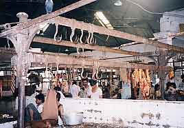 食肉市場。レストランの食材はここから調達されるのか・・・。 |