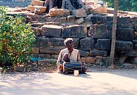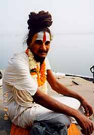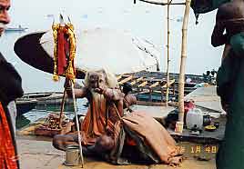 こちらもサドゥー。体が白いのは灰を塗っているためとか。今度は遠くから写す。 |