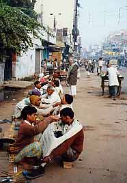 街の床屋 。とにかく切って貰えばいいようだ。 |