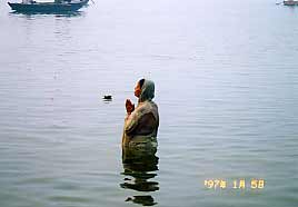 沐浴風景。水に入る気満々でバナラシに来たが、そんな勇気はなかった。 |