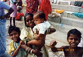 沐浴場で出会った子供たち。無邪気に笑っているが、その後、バクシーシ(お恵み)を要求される。 |