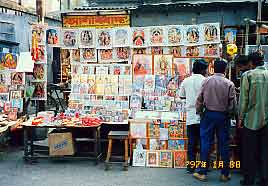 牛は神といえども商品に手を出せば、店主に追い払われる。 |